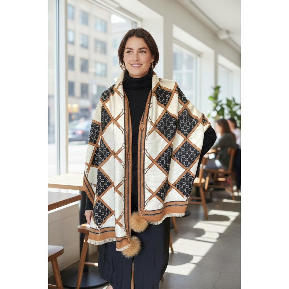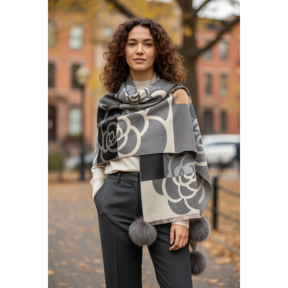 Wrap with Fox Pom Pom (Available in Grey Swirl, Coach, or Gucci)