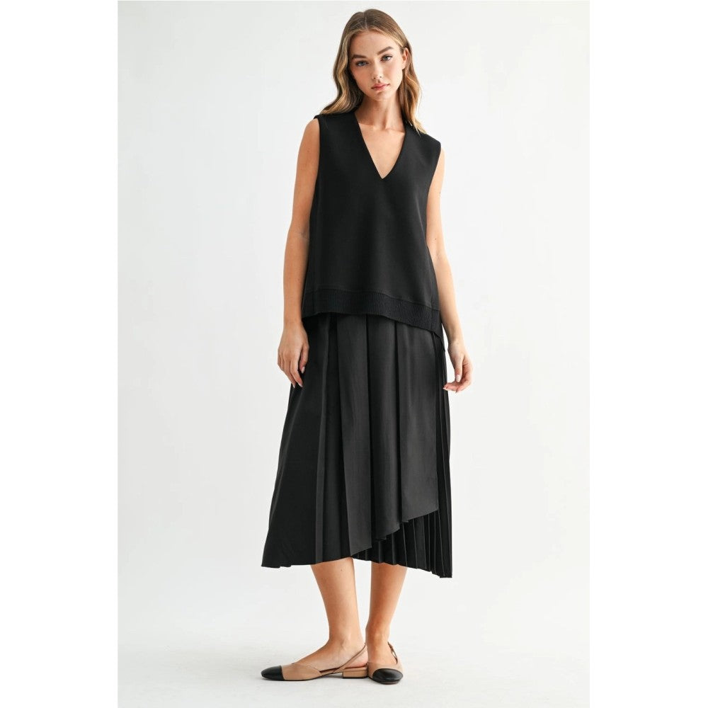 The Jane Vest is a wardrobe essential because of its versatility. Although it looks great worn by itself, it really looks fantastic over a collared shirt. The deep-v neckline and slight a-line shape allow for its layering appeal. The back has a deep slit that is hidden in a wide fold. The smooth knit fabric combination of polyester and spandex make it ideal for travel. Please handwash. XS(4-6), S(6-8), M(8-10), L(10-12), XL(12-14)
